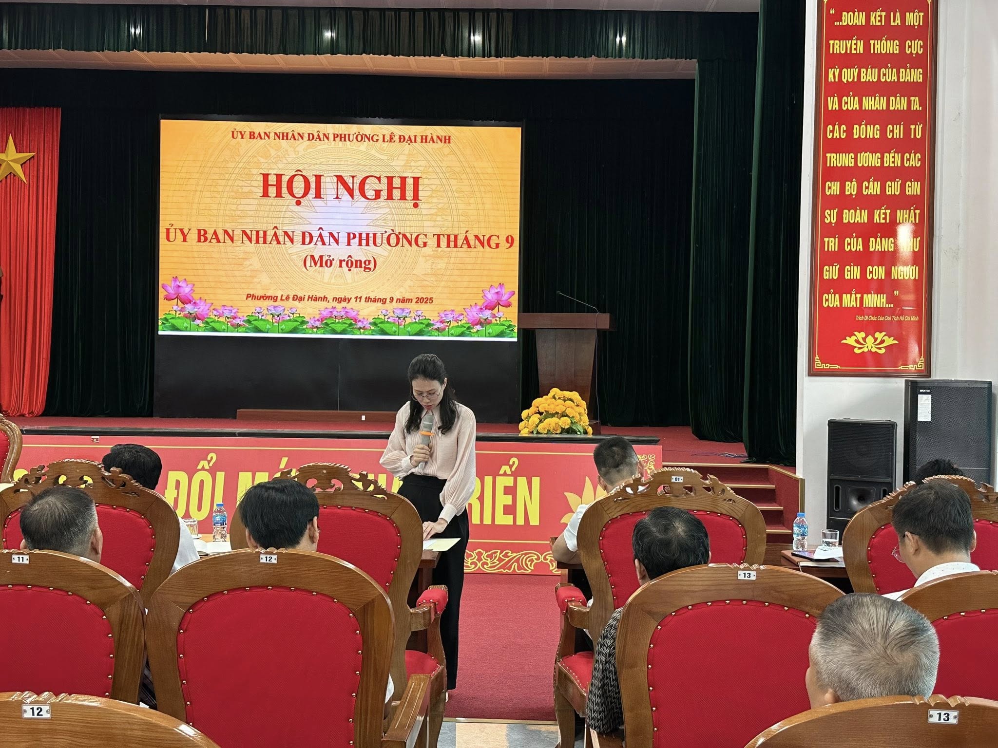 Chiều ngày 11/9, UBND Phường Lê Đại Hành tổ chức phiên họp mở rộng báo cáo kết quả phát triển kinh tế - xã hội tháng 8, phương hướng nhiệm vụ tháng 9 nhằm thảo luận và đưa ra các quyết định quan trọng cho sự phát triển của phường trong thời gian tới.