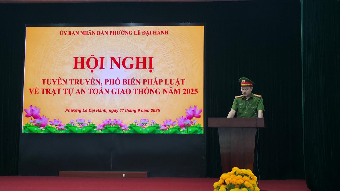 Chiều ngày 11/9, UBND phường Lê Đại Hành tổ chức Hội nghị tuyên truyền phổ biến Pháp luật về trật tự an toàn giao thông năm 2025, với mục đích nâng cao nhận thức và trách nhiệm của cộng đồng trong việc chấp hành pháp luật về trật tự an toàn giao thông, đặc biệt là việc giảm thiểu tai nạn giao thông.